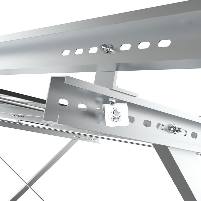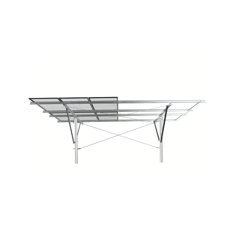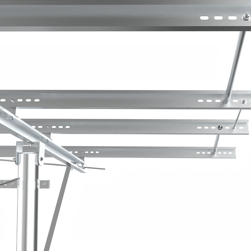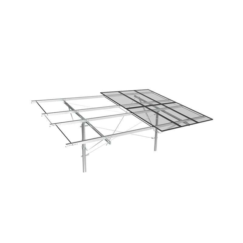 PV -montering af en enkelt kolonne bruger uafhængige kolonner som kerneunderstøttelse med en simpel struktur og økonomiske materialer, der er egnet til lave skråninger eller fladt terræn. med stærk korrosionsmodstand, og den diagonale afstivningsforstærkning forbedrer evnen til at modstå sidevind. Det er velegnet til små og mellemstore jordkraftværker eller distribuerede projekter og er både økonomisk og let at installere, især egnet til scener med ensartet lys og lav vindbelastning.